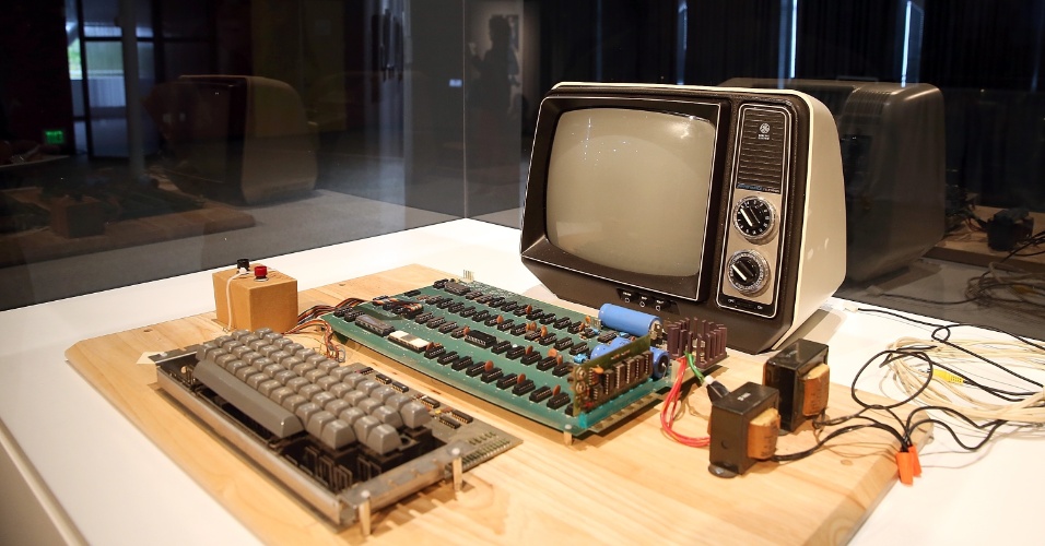 Imagem 1/17: A casa de leilões Christie's realiza de 24 de junho a 9 de julho um leilão virtual de diversos eletrônicos antigos, chamado ''First Bytes: Iconic Technology From the Twentieth Century'' (primeiros bytes: tecnologia icônica do século 20). O destaque do leilão vai para o computador Apple 1 acima, que a Christie's espera leiloar por entre US$ 300 mil e US$ 500 mil (cerca de R$ 670 mil a R$ 1,1 milhão). O primeiro computador da Apple (placa verde ao centro) foi produzido em 1976 e está exposta em Mountain View, na Califórnia. Os computadores e peças a serem leiloados podem ser vistos em www.christies.com/firstbytes MAIS Justin Sullivan/Getty Images/AFP